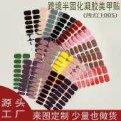 2024跨境半固化凝胶指甲贴光疗UV凝胶美甲贴全贴防水美甲贴纸工厂