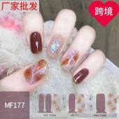 跨境凝胶免烤美甲全贴22指闪粉跳色系带背胶美甲贴纸现货厂家批发
