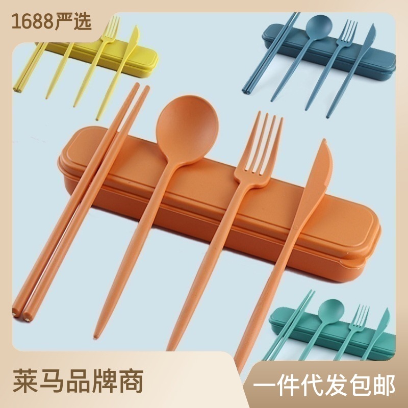 学生旅行刀叉勺筷子四件套 儿童便携PP餐具套装 旅游礼品印logo