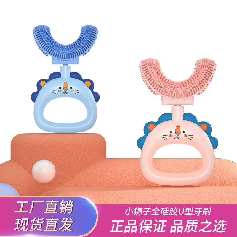 工厂直供手动儿童U型硅胶牙刷 小狮子宝宝口含式口腔清洁刷牙器