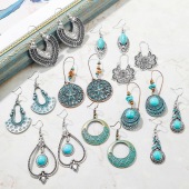 亚马逊热销民族风耳环 跨境欧美绿松石耳环套装 波西米亚复古耳环