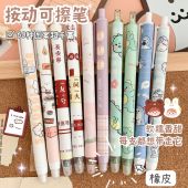 卡通按动可擦笔中性笔小学生专用高颜值圆珠笔子弹头蓝色笔芯水笔