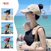 夏季防晒帽女2025新款时尚通勤空顶遮阳帽可扎丸子可折叠鸭舌帽子