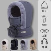 冬季保暖雷锋帽子男防风加绒厚围脖一面罩女骑车防风骑行包头帽