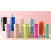 2024新款厂家直供跨境热卖大容量双层塑料杯简约双层加厚吸管杯