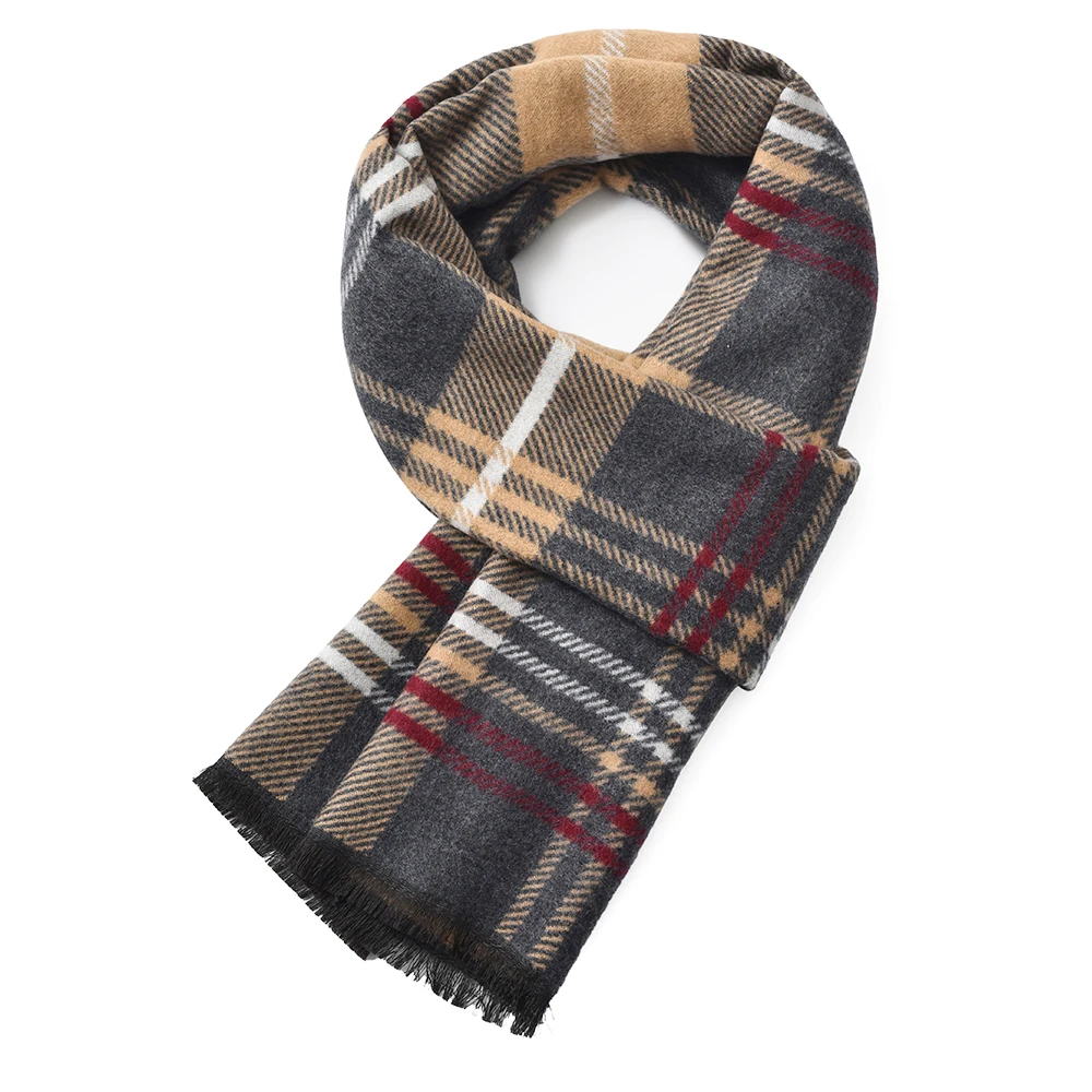 新款男士围巾男冬季保暖欧美格子长款仿羊绒男款围脖厂家批发定制