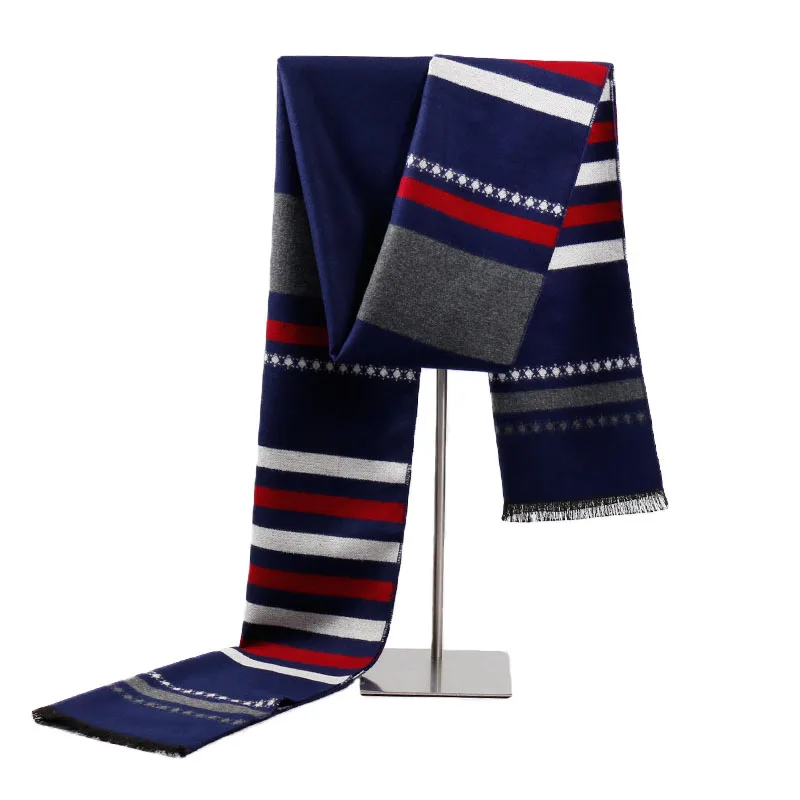 新款条纹男士围巾 冬季保暖加厚韩版围巾男 欧美外贸围脖厂家批发