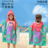 儿童浴巾斗篷超细纤维现货带帽游泳沙滩吸水速干男女孩沙滩巾外贸