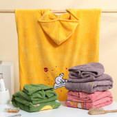 珊瑚绒儿童浴袍连帽斗篷宝宝浴巾可穿婴儿披风速干不掉毛游泳家用