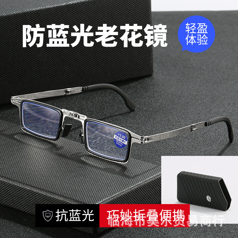 折叠老花镜男超轻无螺丝高清不易疲-劳防蓝光老花眼镜便携带眼镜