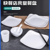 密胺白色圆盘餐厅饭店商用菜盘骨碟仿瓷塑料快餐盖浇饭盘餐具批发