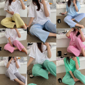 跨境新款套装夏装芊芊叶褶皱两件套薄款扎染宽松家居服短袖长裤女