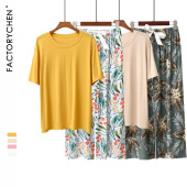 豹纹仿棉睡衣套装女 短袖长裤夏蕾丝款 时尚家居服 新品热卖款