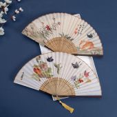 复古风汉服蝴蝶猫咪折扇女式日用夏季扇舞蹈摄影装饰国风流苏扇子