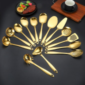 跨境金色公用勺自助餐勺蛋糕铲厨房烹饪用品汤勺漏勺油勺粉扒套装