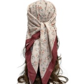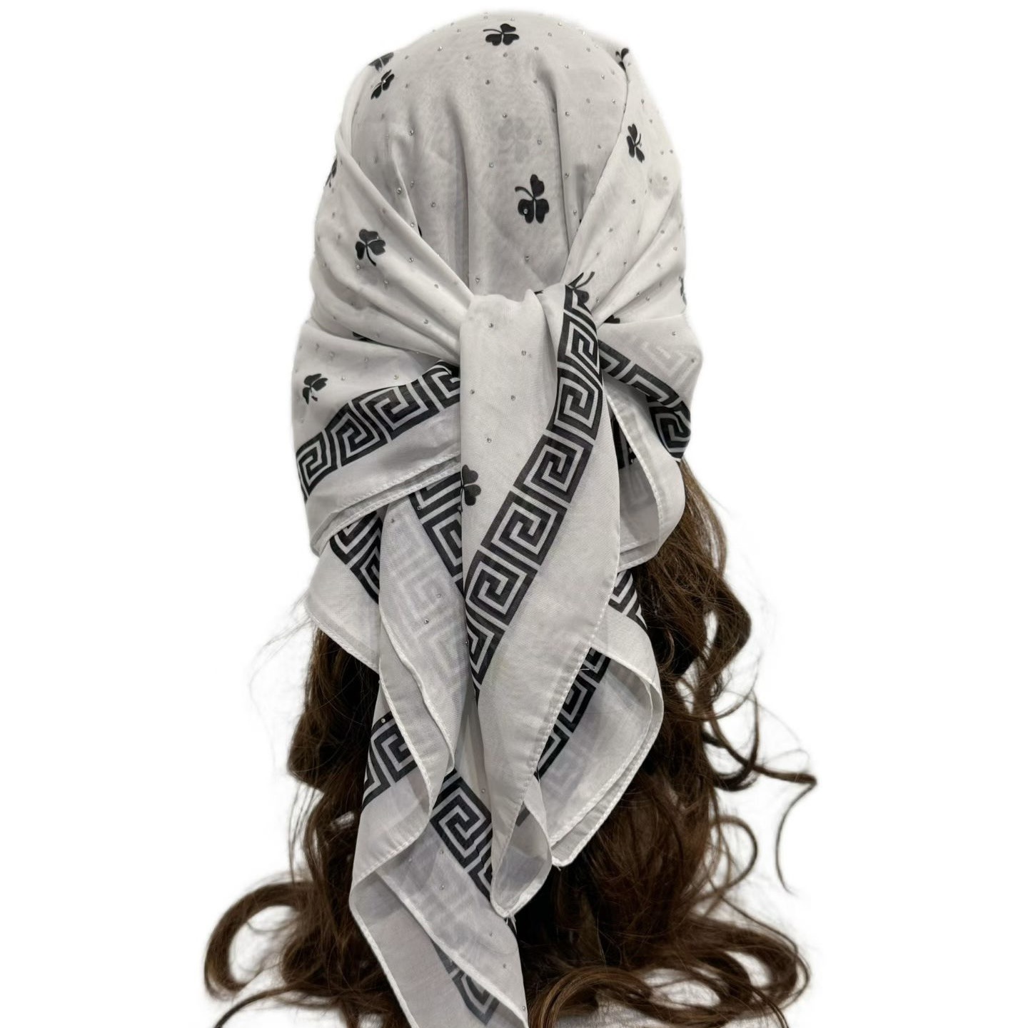 跨境新款复古印花方巾女秋冬烫钻头饰头巾高级感方巾百搭围巾中亚