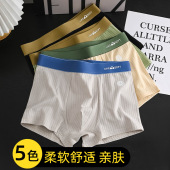 中腰撞色竖纹牛奶丝透气男士平角内裤潮流字母印花亲肤舒适四角裤