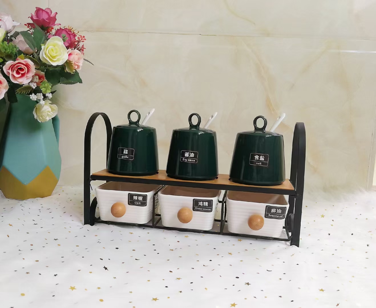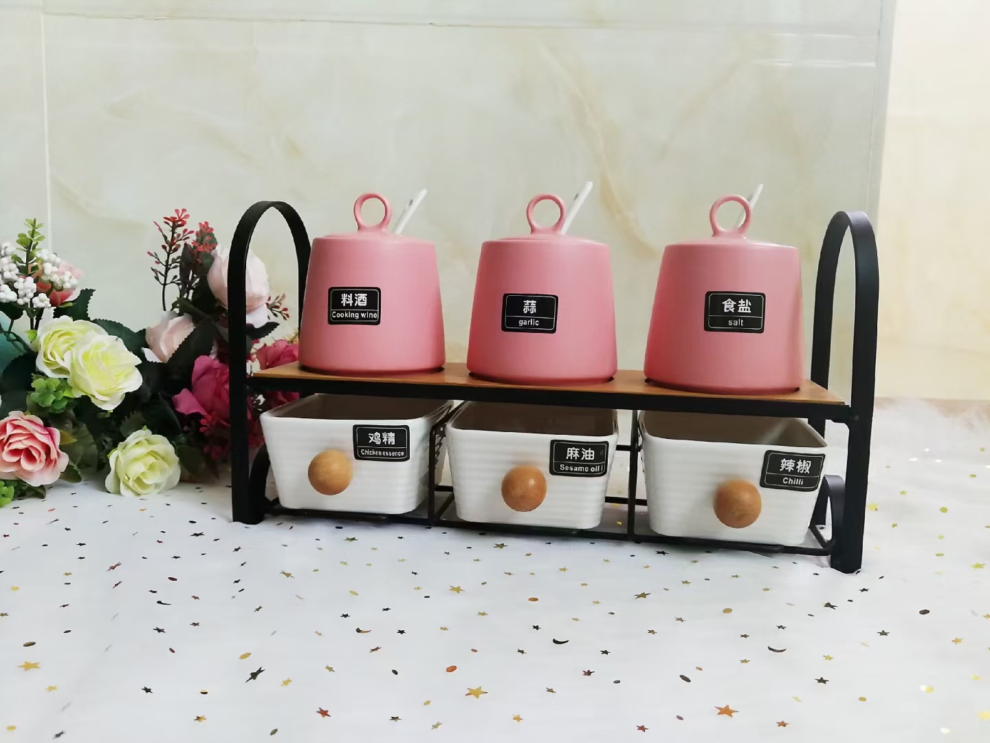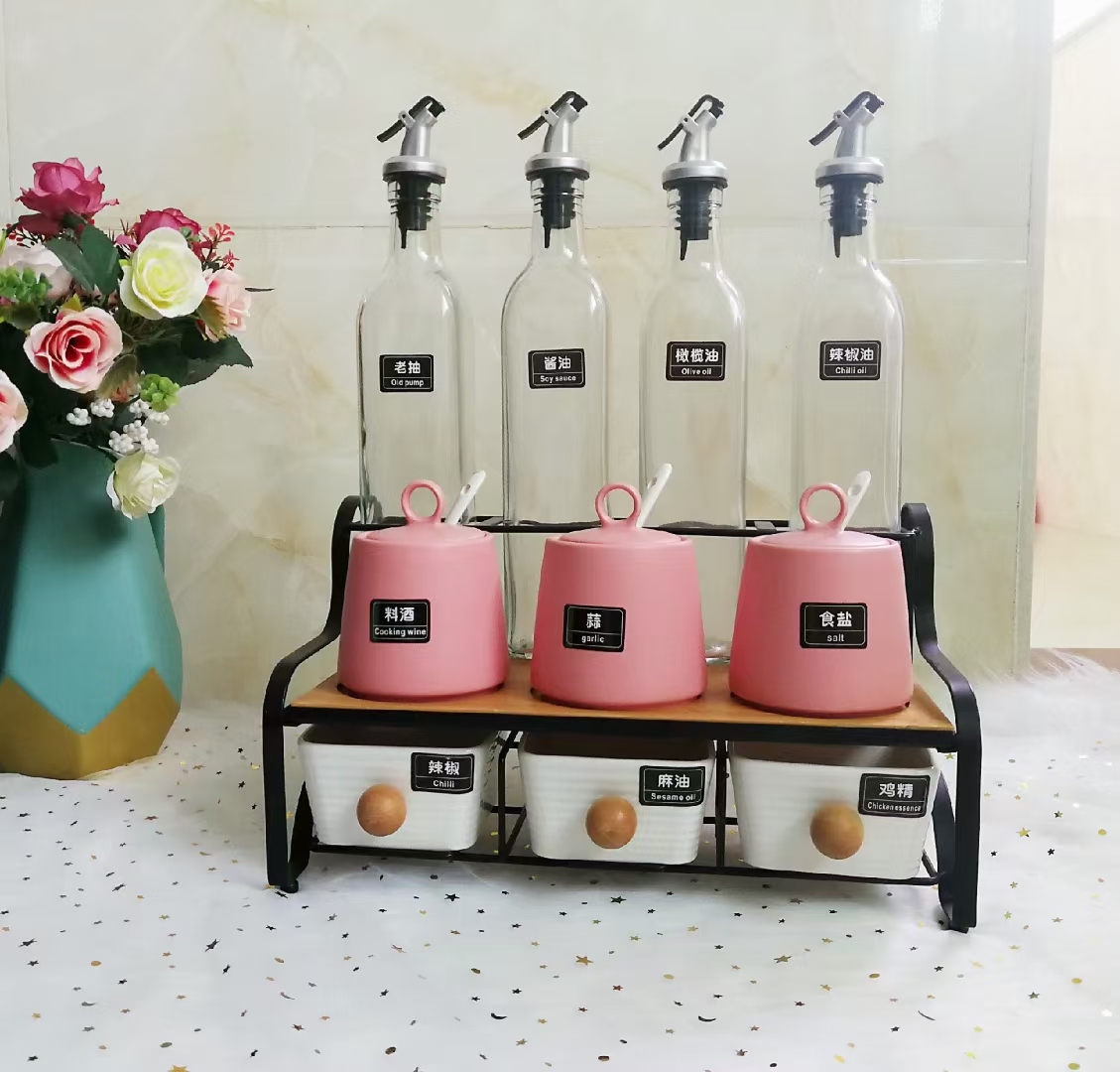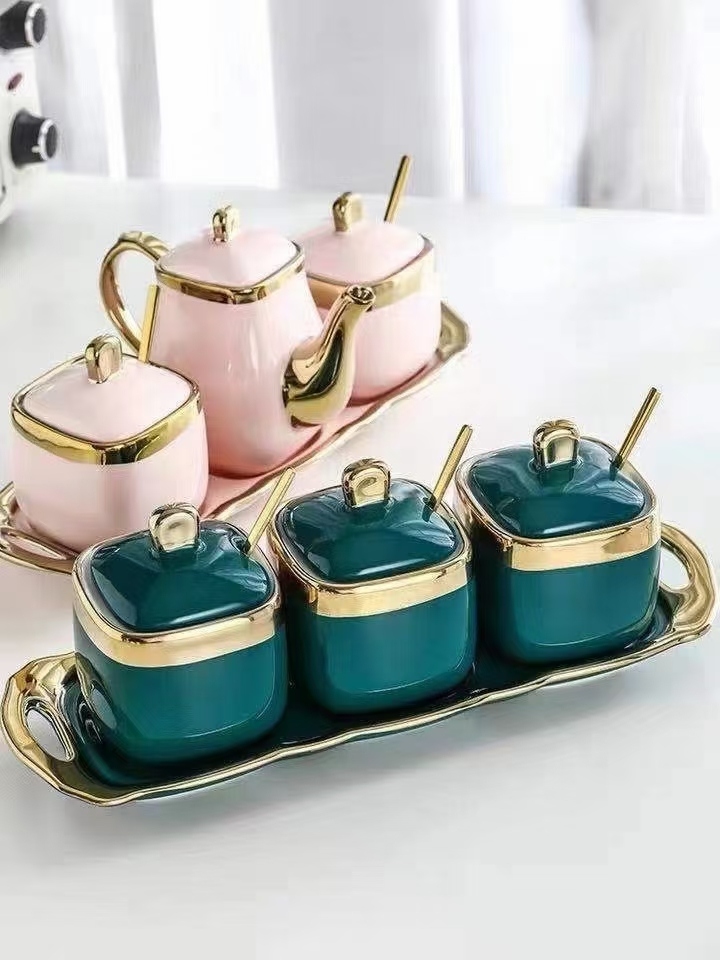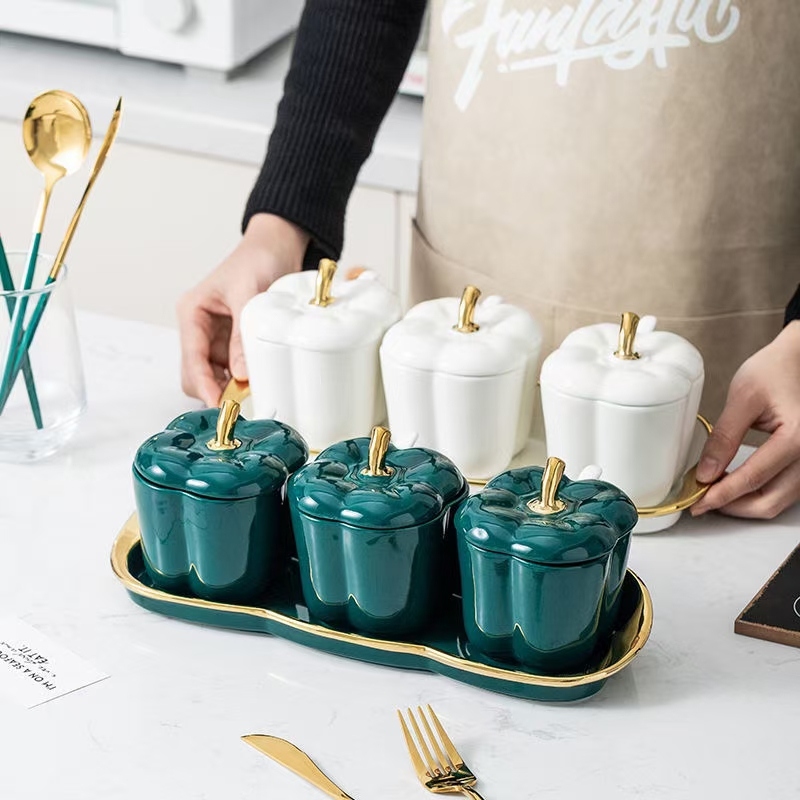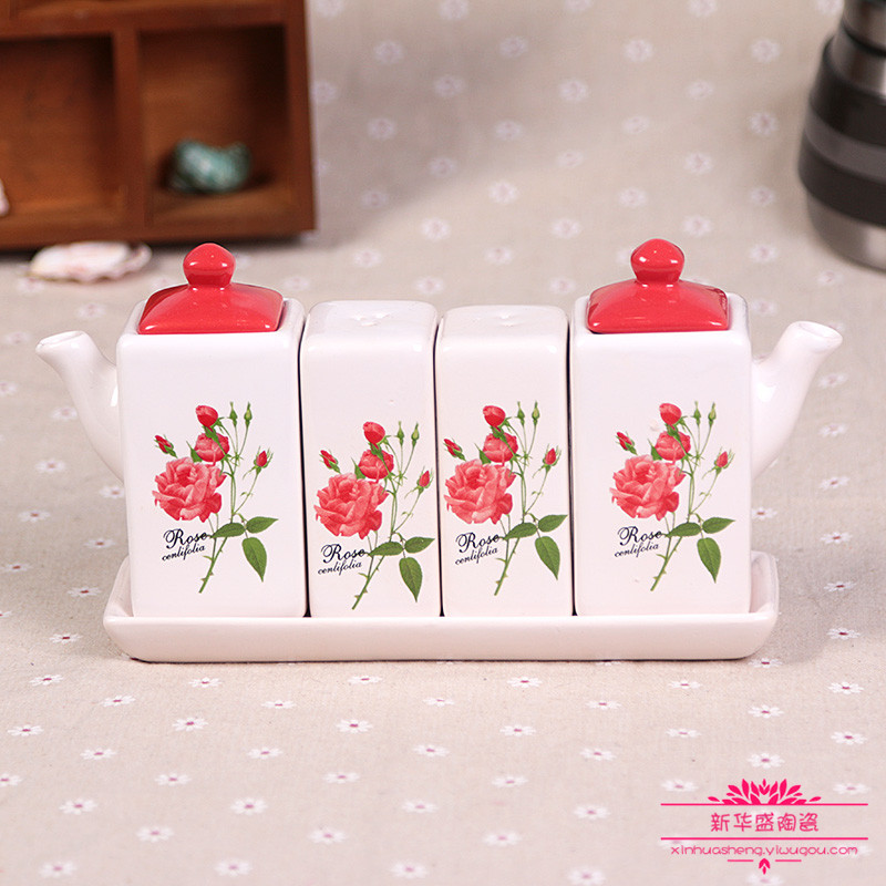 日式厨房磨砂调味罐套装 蝶恋花面陶瓷家用组合调料盒盐糖 调料瓶