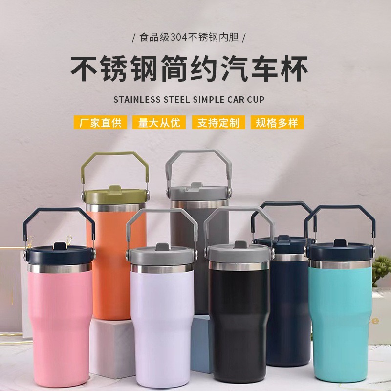 30oz单饮提手杯汽车杯冰霸杯双饮保温杯大容量不锈钢手提车载杯