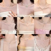 韩版轻奢镶嵌锆石山茶花珍珠套装项链戒指耳钉个性百搭时尚锁骨链