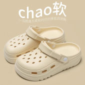 新款洞洞鞋女防滑居家踩屎感时尚EVA外穿增高沙滩包头半拖洞洞鞋