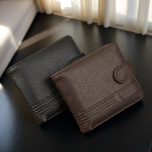 厂家批发男士钱包PU皮短款外贸跨境拉链搭扣钱夹新款皮夹零钱包