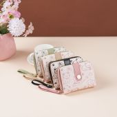跨境新品时尚女士钱包pu卡包一体零钱包小清新多功能花朵短款钱包