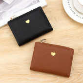 新款女士短款钱包小爱心零钱包热销小巧可爱荔枝纹2折女卡包钱夹