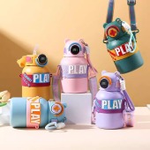 高颜值卡通316不锈钢儿童壶 学生弹跳吸管杯便携背带萌趣保温杯