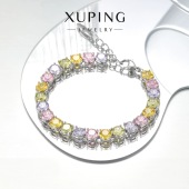 旭平铜合金镀白色镶嵌彩色圆形锆石轻奢手链糖果色彩宝系列手饰女