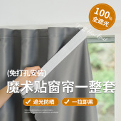 内开窗帘免打孔魔术贴全遮光窗帘粘贴式卧室遮阳外贸亚马逊出租屋