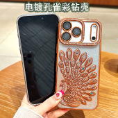 适用iphone17手机壳彩钻孔雀苹果17promax水钻电镀手机套闪粉渐变