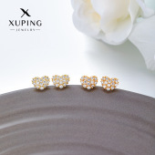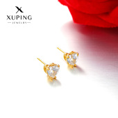 旭平时尚镶嵌单锆石铜合金镀24k金色简约爱心耳钉耳饰轻奢气质女