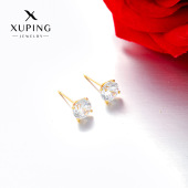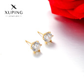 旭平简约小巧铜合金镀24k金色六爪单锆石耳钉 经典日常易搭耳饰女