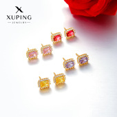 旭平彩宝系列方糖耳钉 铜合金镀24k金色轻奢气质高级感耳饰批发女