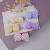 手工布艺珍珠刺绣蝴蝶结BB夹女童拉绳布艺发夹装饰配件服装辅料