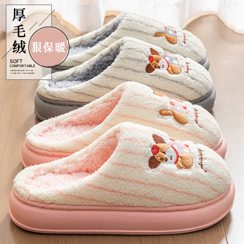 新款棉拖鞋女保暖秋冬季室内家居情侣厚底轻便毛毛拖鞋男冬天批发