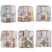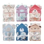 定制新生儿连帽包巾小方巾套装婴幼儿洗澡擦身手套柔软包被小毛巾