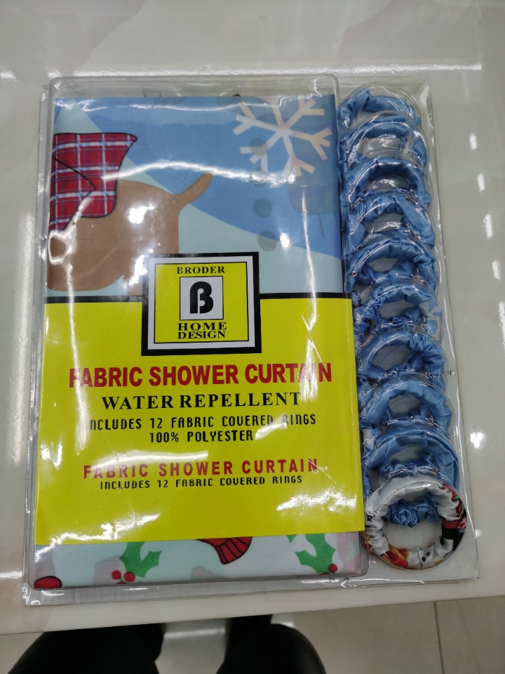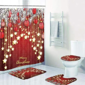 圣诞浴室四件套浴帘马桶垫地垫防水防霉圣诞浴帘套装加厚浴室防水