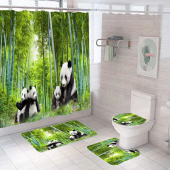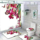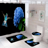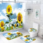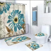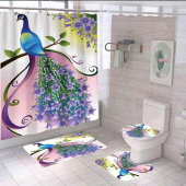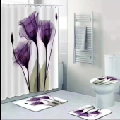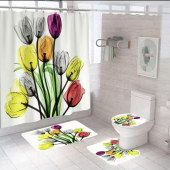 现代简约浴室四件套浴帘马桶垫地垫防水防霉浴帘套装加厚浴室防水