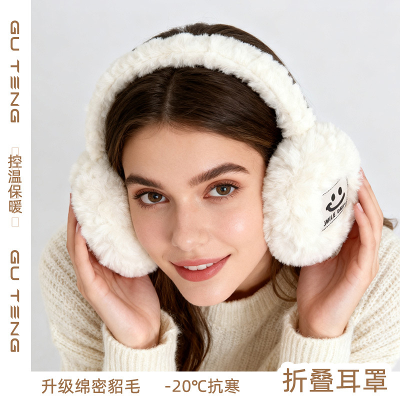 冬季外出女款防寒防风卡通笑脸保暖耳罩米兰貂绒女生百搭毛绒耳套