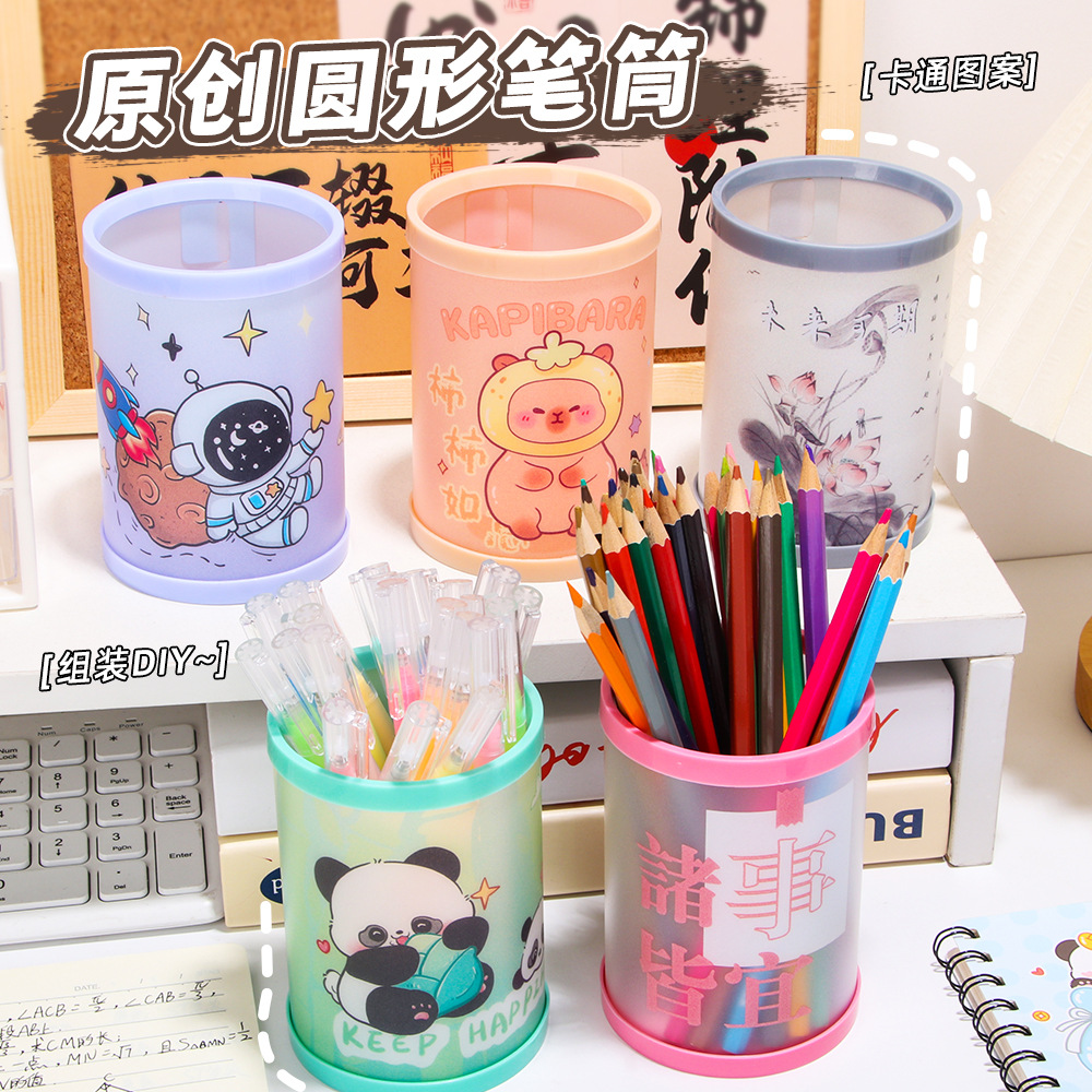 创意卡通圆形折叠笔筒儿童DIY组装高颜值桌面收纳盒文具奖品批发