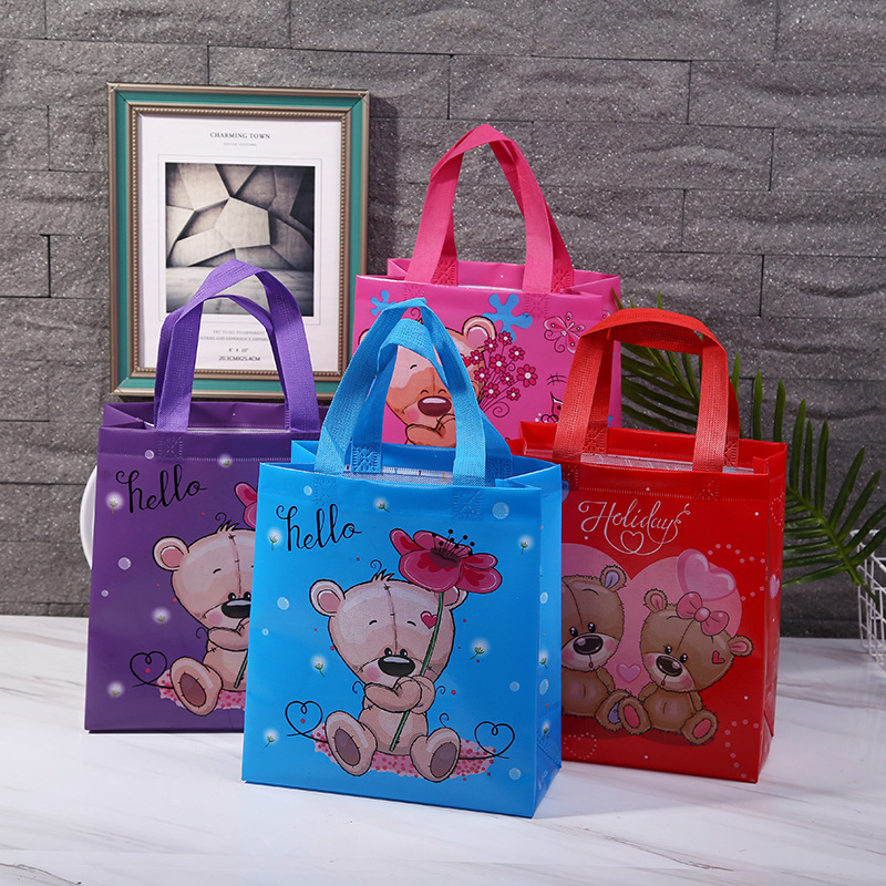 厂家跨境专供现货24*26*11无纺布一次性成型卡通小熊化妆品立体袋