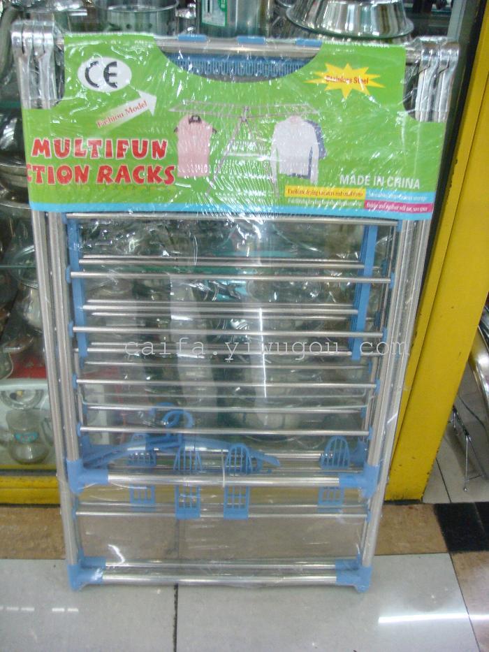 防风活动杆不锈钢晾衣架 可折叠