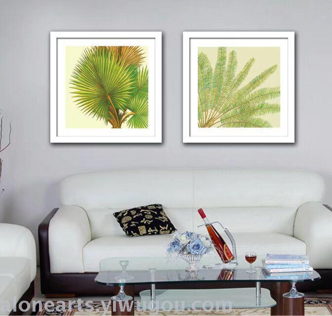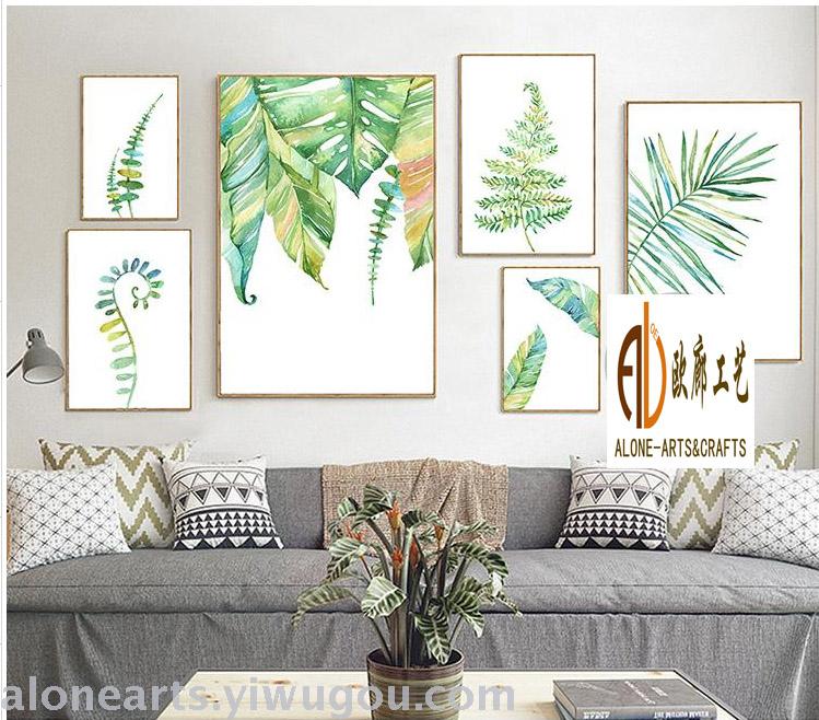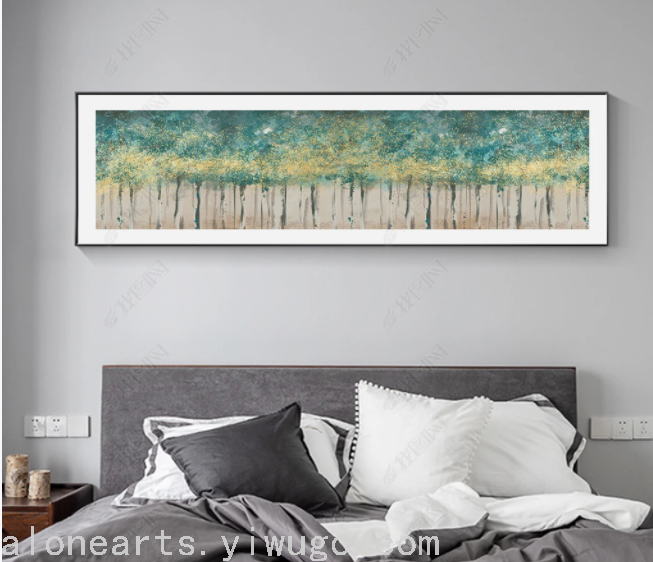 床头横版叶子北欧ins 宾馆客房 油画酒店挂画 餐厅卧室装饰画