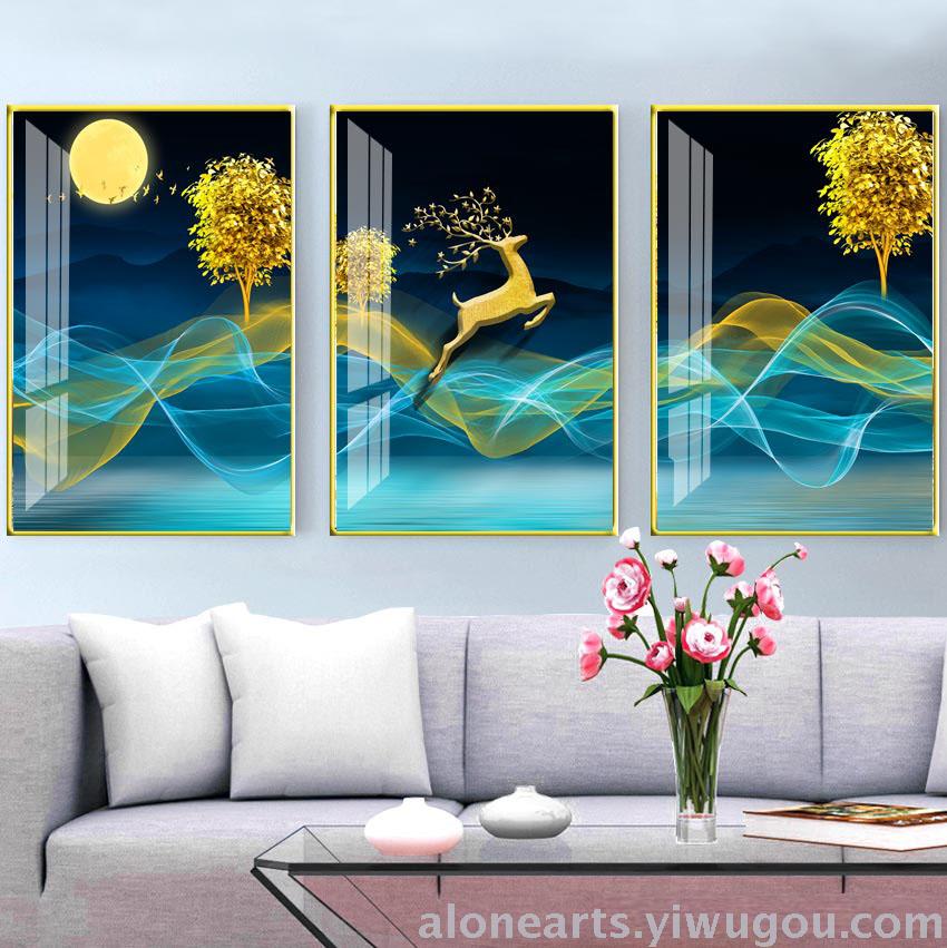 北欧装饰画 客厅沙发酒店背景墙挂画 创意油画 晶瓷画 逐鹿生财