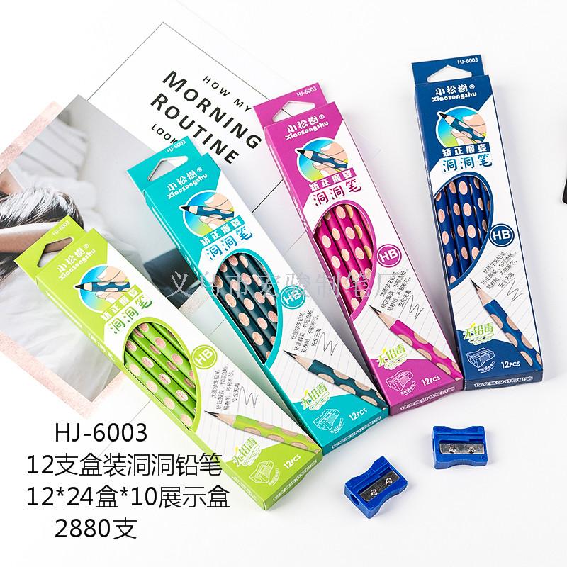小松树HB洞洞铅笔无毒三角杆儿童30支筒学生纠正姿势厂家批发