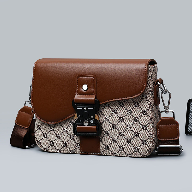 跨境新款斜挎男包老花皮质翻盖简约时尚百搭单肩包上班通勤小方包