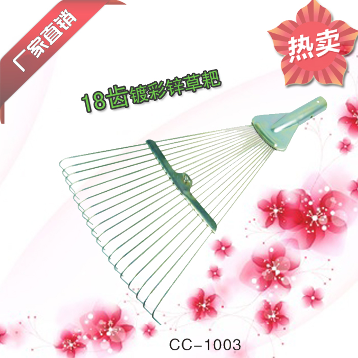 厂家直供1003-18齿 可伸缩 镀彩锌 铜色 园林枯叶落叶圆齿草耙户