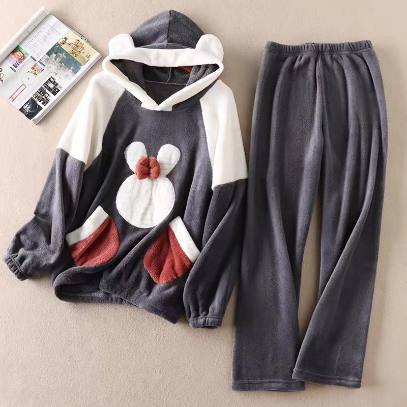 卡皮巴拉卡通睡衣女连帽舒棉绒睡袍套装2024冬季新款可爱风家居服